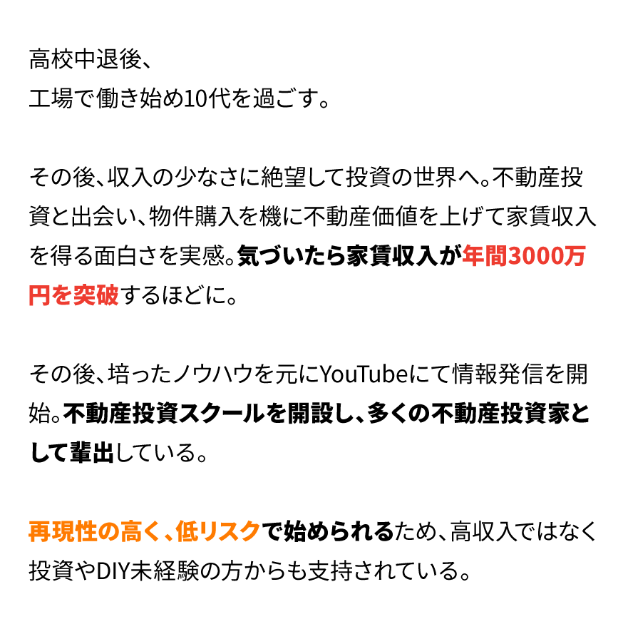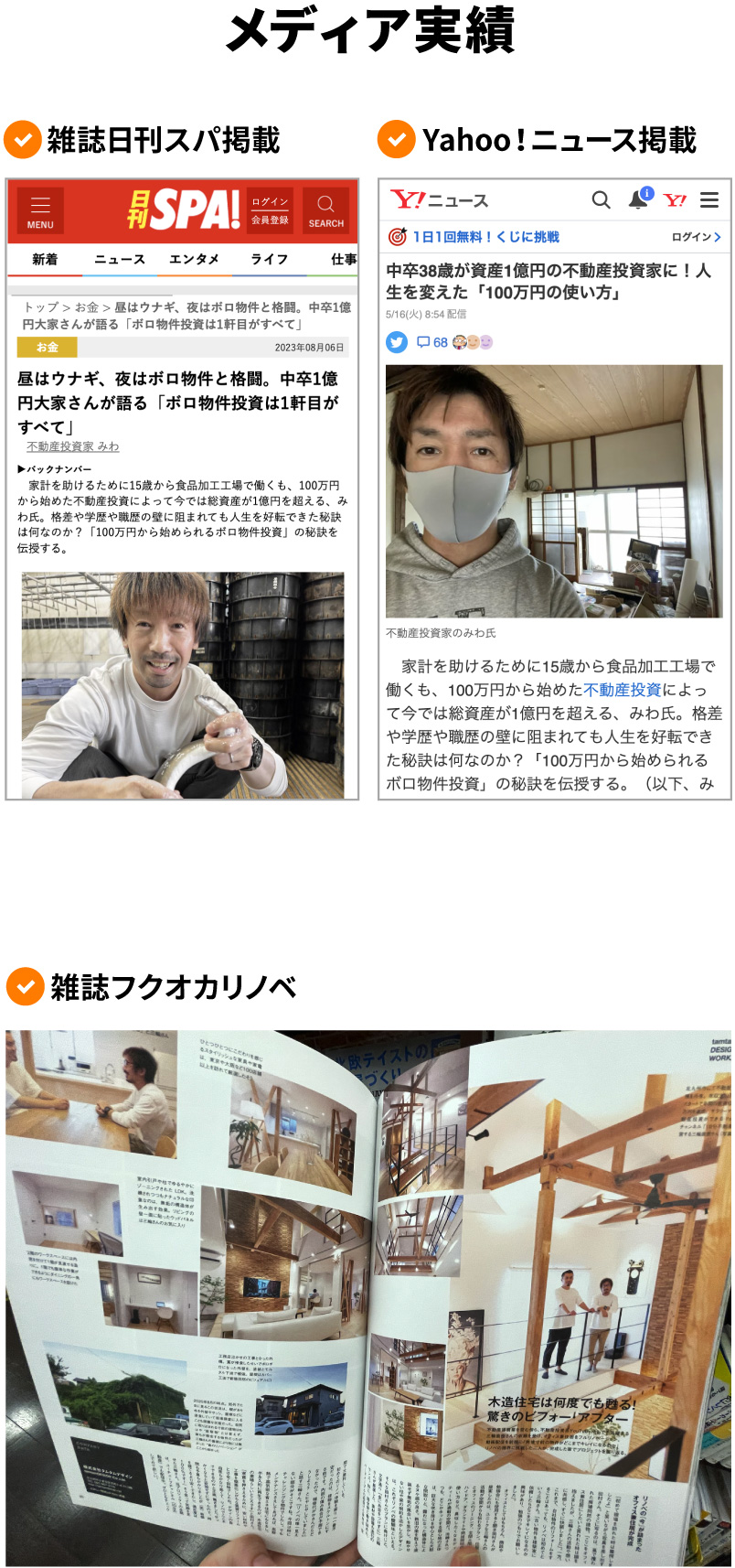 本当にみわさんのやり方だったら、失敗も少ないので早めにやった方がいいと思いますし、サラリーマンの方だったら融資も借りやすいので、サラリーマンの人にこそやって欲しいですね。